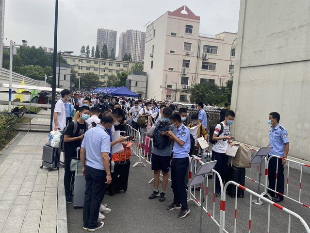 为做好疫情防控下的迎新工作,8月27日,中校区本科生迎新现场,处务班子、支委委员和全体党员发挥先锋模范作用,投身新生入校安全保障一线,共迎接本科新生报到1900余人,从早晨7:30奋战至晚上10:30,全力做好校园疫情防控、道路交通秩序维护、新生入住等各项保障工作。