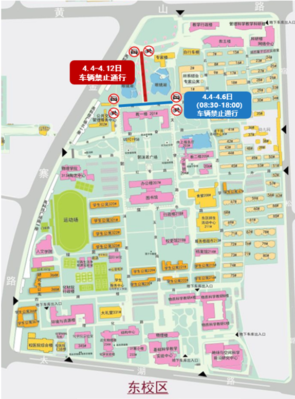 此外,4月4日至4月6日(08:30-18:00)清明节假期将对东校区瀚海路部分路段进行临时管控(如图示),期间机动车辆、非机动车辆请绕行,给您带来的不便,敬请谅解!