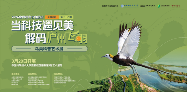 在2026年春晚合肥分会场,“皖美之瞳”主舞台以一眼洞见未来的城市气质惊艳世界。为展现合肥科创名城风采,以科技笔触描绘庐州之美,中国科学技术大学联合合肥市林业和园林局、安徽省美术馆、SEE基金会和腾讯基金会,于2026年3月至5月共同举办“当科技遇见美 解码庐州飞羽”鸟类科普艺术展。