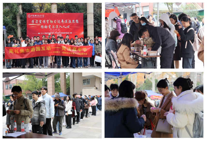 12月3日,“宪章寻踪,法印校园”宪法知识打卡活动在东、西校区同步举行。活动设置多个各具特色的打卡点,师生在校史馆前、郭沫若广场、第二教学楼、也西湖畔等地点进行打卡并参与答题、诵读、猜题等活动,在校园探索中学习宪法知识。师生们手持集章册漫步校园,在互动体验中增进对宪法的理解,并将宪法知识转化为校园记忆与法治文化积淀。