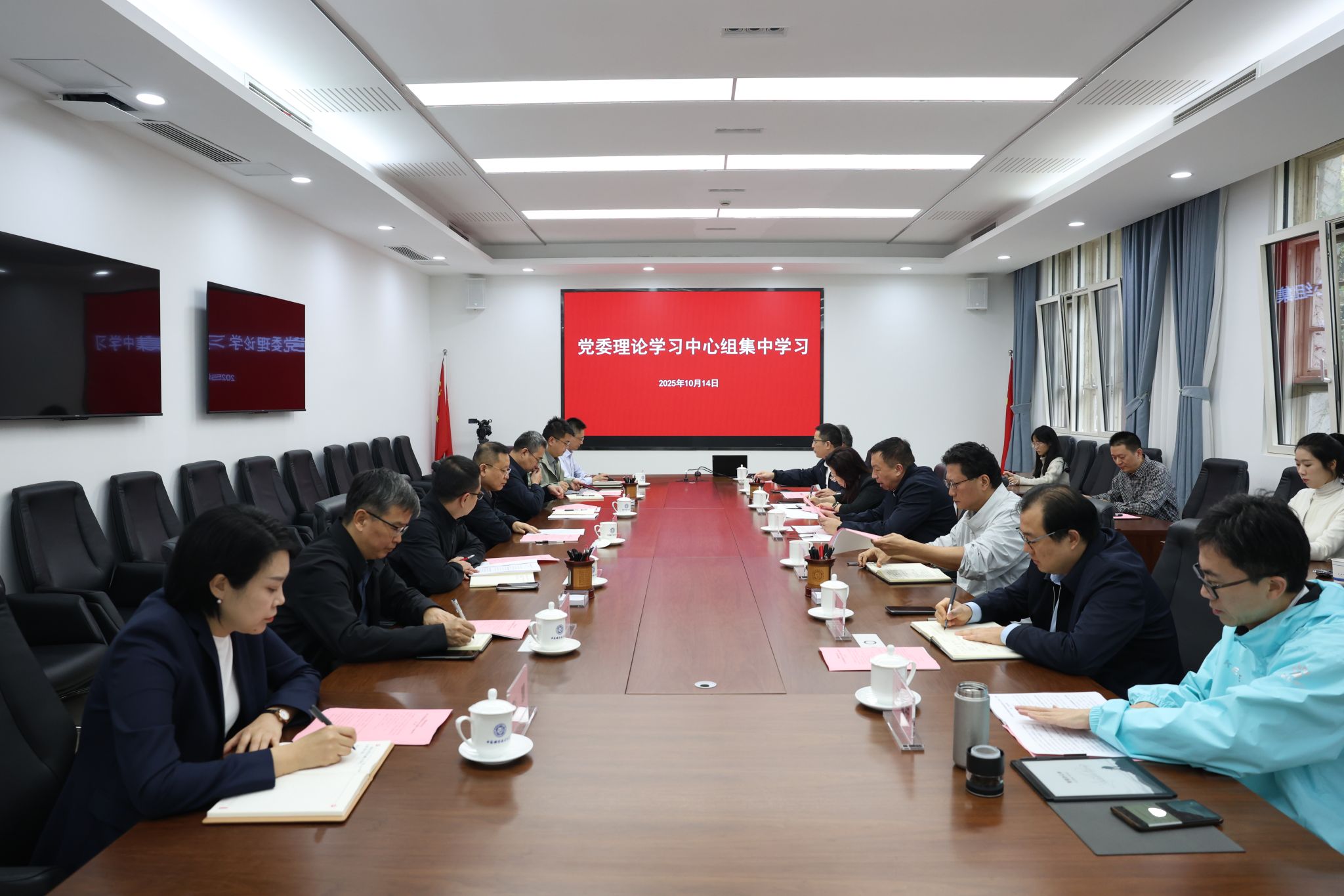 10月14日下午,校党委理论学习中心组在东校区218楼二楼会议室召开集中学习会,深入学习习近平总书记关于铸牢中华民族共同体意识的重要讲话精神。校党委书记舒歌群主持会议,在校校领导、党委工作部门主要负责人参加会议。