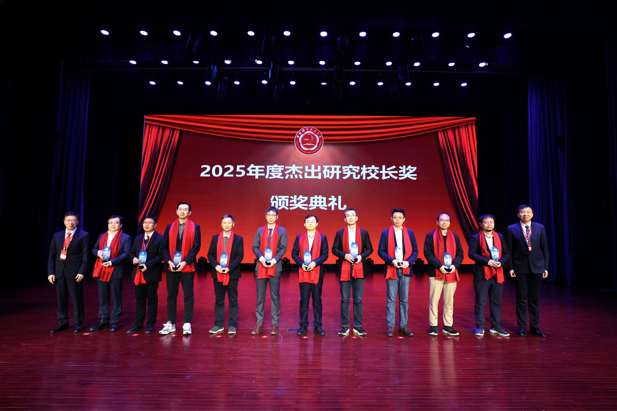 会上,党委常委、副校长傅尧宣读2025年度杰出研究校长奖表彰决定,宇宙大尺度结构团队、微尺度集成影像中心团队、超导量子计算研究团队、双极膜重水解离制备氘代化学品团队,金刚石量子器件与应用研究团队、行星内部物理团队、量子微纳卫星研究团队、孙成特任教授、路军岭教授和武晓君教授、肖正国教授因在科技创新活动中作出重大成果获得表彰。舒歌群、常进共同为获奖团队、获奖者颁奖。