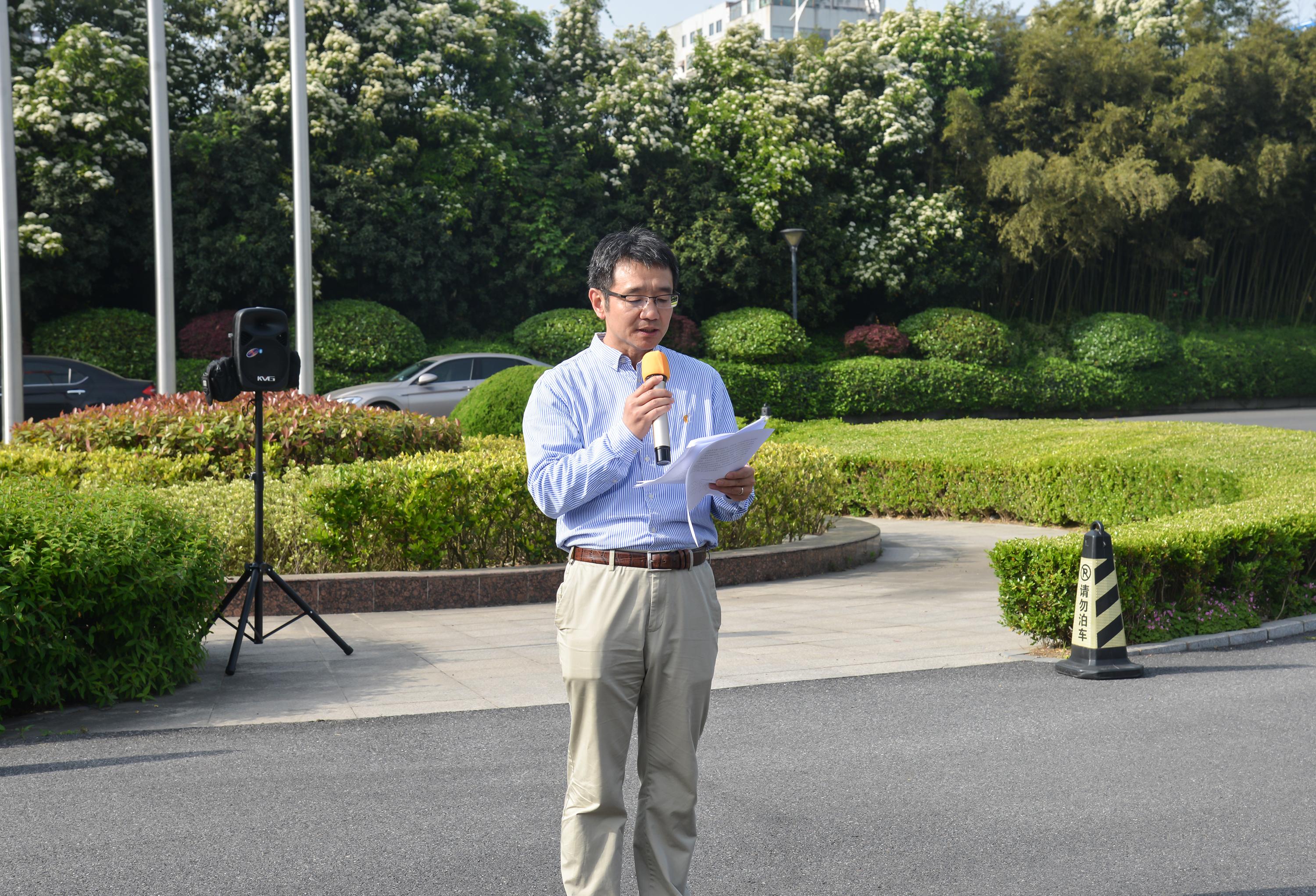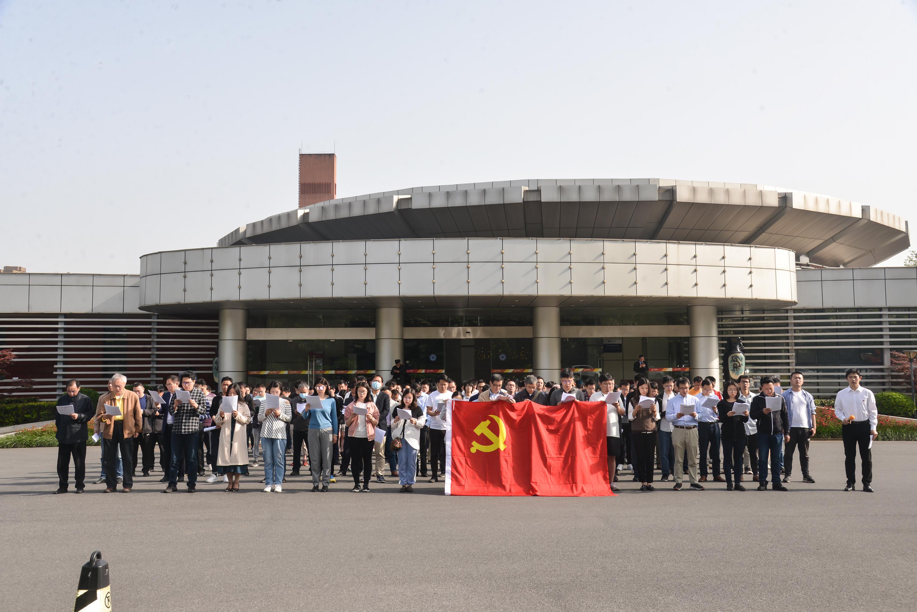 为庆祝中国共产党100周年华诞,国家同步辐射实验室党委(核科学技术学院党委)组织开展了一系列党史学习教育。值此“五一”国际劳动节和“五四”青年节来临之际,一场庄重的升国旗、学习习近平总书记在清华大学的重要讲话精神、唱红歌活动于2021年4月30日上午8:00在国家同步辐射实验室环厅前广场顺利举行。实验室和学院全体教工党员、国家同步辐射实验室2020级研究生班党支部、各学生党支部党员代表、部分发展对象和入党积极分子代表参加了此次活动。