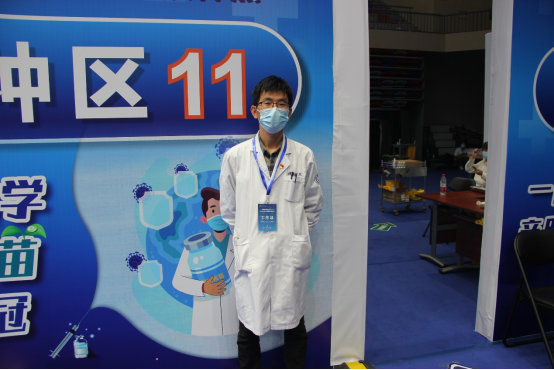 党员刘明是我院公共卫生科的主任,他在此次疫苗接种工作中负责起草我校的疫苗接种实施方案,指导疫苗临时接种点的布局设置,布置现场疫情防控措施,对学生志愿者进行培训以及新冠病毒疫苗的调度等工作,刘主任每天都是早早的来到疫苗接种点,又是最后一个离开,在疫苗接种的四天半时间里,刘主任是现场最忙碌的人。