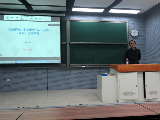 4月9日晚19:00,科学家精神系列讲座的首场报告在东校区第二教学楼开讲,由科学出版社副总编辑兼期刊出版中心主任胡升华讲述钱临照院士的故事。胡升华在开场白中介绍了弘扬科学家精神的时代背景以及科学家精神的内涵和现实意义,并按照时代脉络讲述了钱临照先生师从钱穆,改入大同大学,宁要北平研究员的半薪助理员岗位,放弃伦敦大学博士学位,中断赴德计划回国抗战,留守大陆以及以科大为家的共计七次重要选择。在这七次选择中,追求理想与兴趣、民族尊严与家国情怀是影响钱临照先生选择的重要因素。