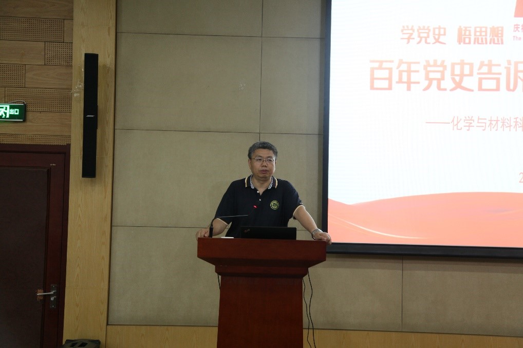 6月16日下午,化学与材料科学学院在环资楼学术报告厅举办党史学习教育专题党课,学院党委书记闫立峰做题为“百年党史告诉我们‘六个为什么’”的党课报告,学院2020年下半年至今新发展的90余名预备党员共同聆听了党课报告。