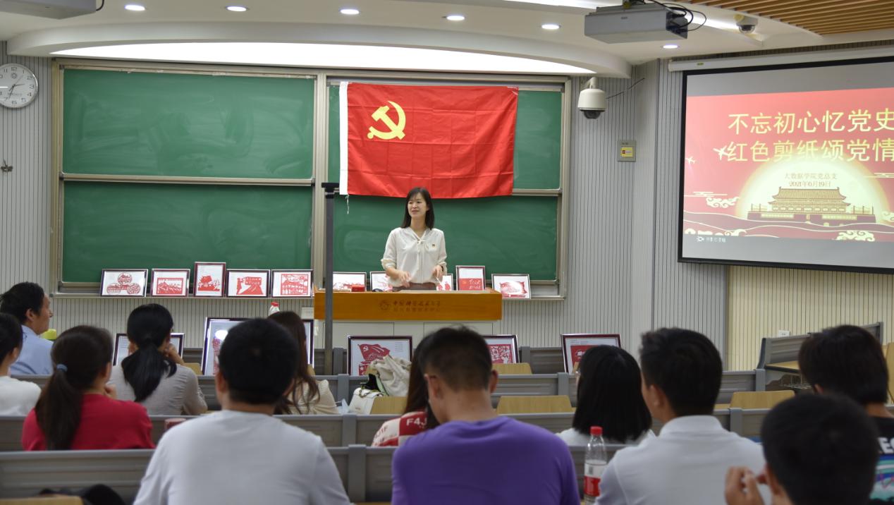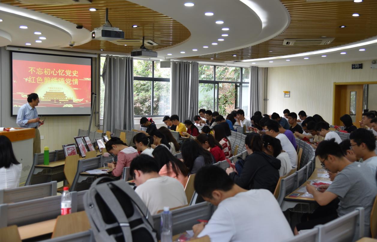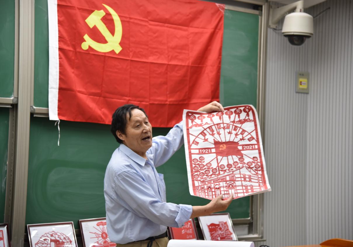 6月19日下午,大数据学院党总支在西区3A111教室举办“不忘初心忆党史 红色剪纸颂党情”活动。活动特别邀请到了我校退休教师、剪纸艺术家鲍尚贵老师作为主讲,我院全体党员、入党积极分子参加了活动。