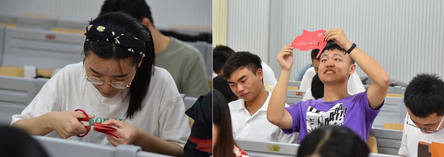 随后,鲍尚贵老师为大家介绍了剪纸艺术的历史渊源,并现场为大家演示剪纸。活动现场大家兴趣高涨,目不转睛地看着老师的巧手在空中飞舞着、不停地来回穿梭,红纸转眼变成了一张樱花剪纸,大家纷纷为鲍老师的剪纸技术拍手点赞。同学们也在鲍老师的指导下开始学剪党旗。不多会,一面面鲜艳的党旗就呈现在了同学们手中。