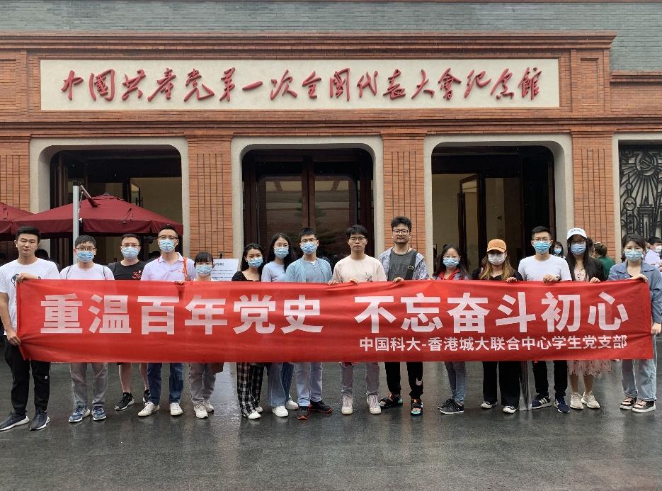 为庆祝中国共产党成立100周年,加强党员同志对党史、革命史的认识学习,增强自身责任感和使命感,2021年6月19日,中国科大-香港城大联合中心学生党支部(以下简称联合中心学生党支部)前往上海市黄浦区中共一大纪念馆,缅怀革命先烈,纪念百年党史,开展“重温百年党史,不忘奋斗初心”主题党日活动。本次活动由联合中心学生党支部付贤钟,胡振宇和席寒同志主持,参加此次活动的共有15名党员、预备党员和入党积极分子。
