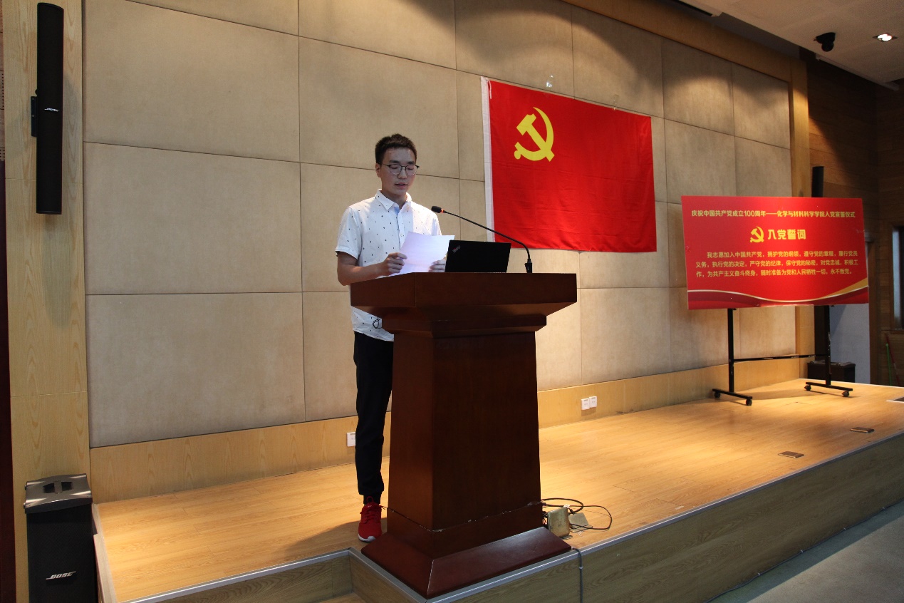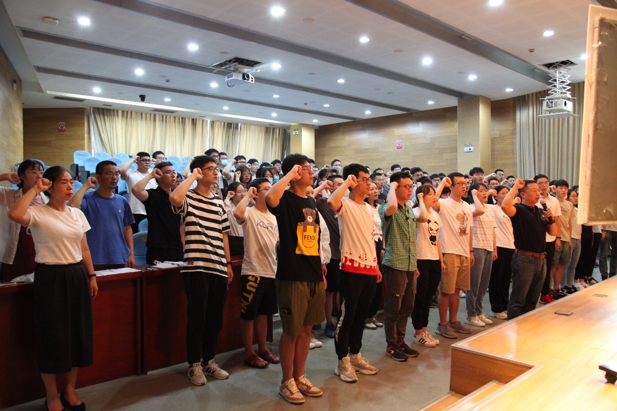 6月25日上午10点,化学与材料科学学院党委在环境资源楼学术报告厅举行庆祝中国共产党成立100周年新党员入党宣誓仪式,学院新发展党员面向党旗,庄严宣誓,用铮铮誓言表达了坚定的理想信念、价值追求和为共产主义事业奋斗终身的决心。本次仪式旨在激励新党员传承红色基因、弘扬革命精神,积极投身新时代伟大征程,同时也激励中国科大学子一心为党、科教报国的热情和信念。