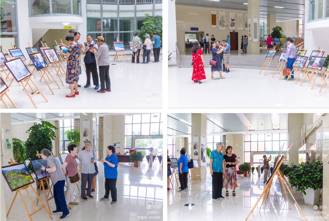 简短的开展仪式后,参展领导与老同志们在南区图书馆一楼大厅驻足观看展品,点评分享作品的精美精妙、选题新颖、立意深远。一幅幅苍劲有力、笔酣墨饱的书画;一件件栩栩如生、惟妙惟肖的手工;一张张活灵活现、别出心裁的照片,各个赏心悦目、耐人寻味。本次作品展参展作品共146幅,其中书画作品59幅、摄影作品58幅、手工艺品29件,展览时间将持续到十月底。参展作品形式多样,主题鲜明,饱含了创作者的赤子之情,尽抒爱国之志,充分表达了离退休老同志们对党、对祖国、对人民的深情和对美好生活的热爱。
