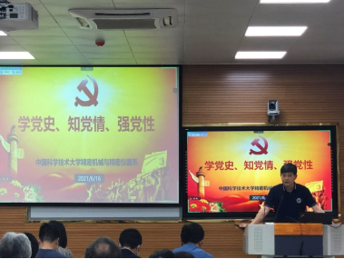 陆夕云院士作《学党史、讲奉献,勇于担当和创新》重点发言。他说,在庆祝我党百年华诞的历史时刻,在“两个一百年”奋斗目标的关键节点,党中央提出了深入学习党史的号召,并且强调全党同志要做到学史明理、学史增信、学史崇德、学史力行。身为一名科大教师,我们要坚持“科教报国、追求卓越”的初心使命,“潜心立德树人,执着攻关创新”,培养全面发展的高素质人才。在这过程中,作为一名党员,要发挥模范带头作用,为院系师生办实事、做奉献。