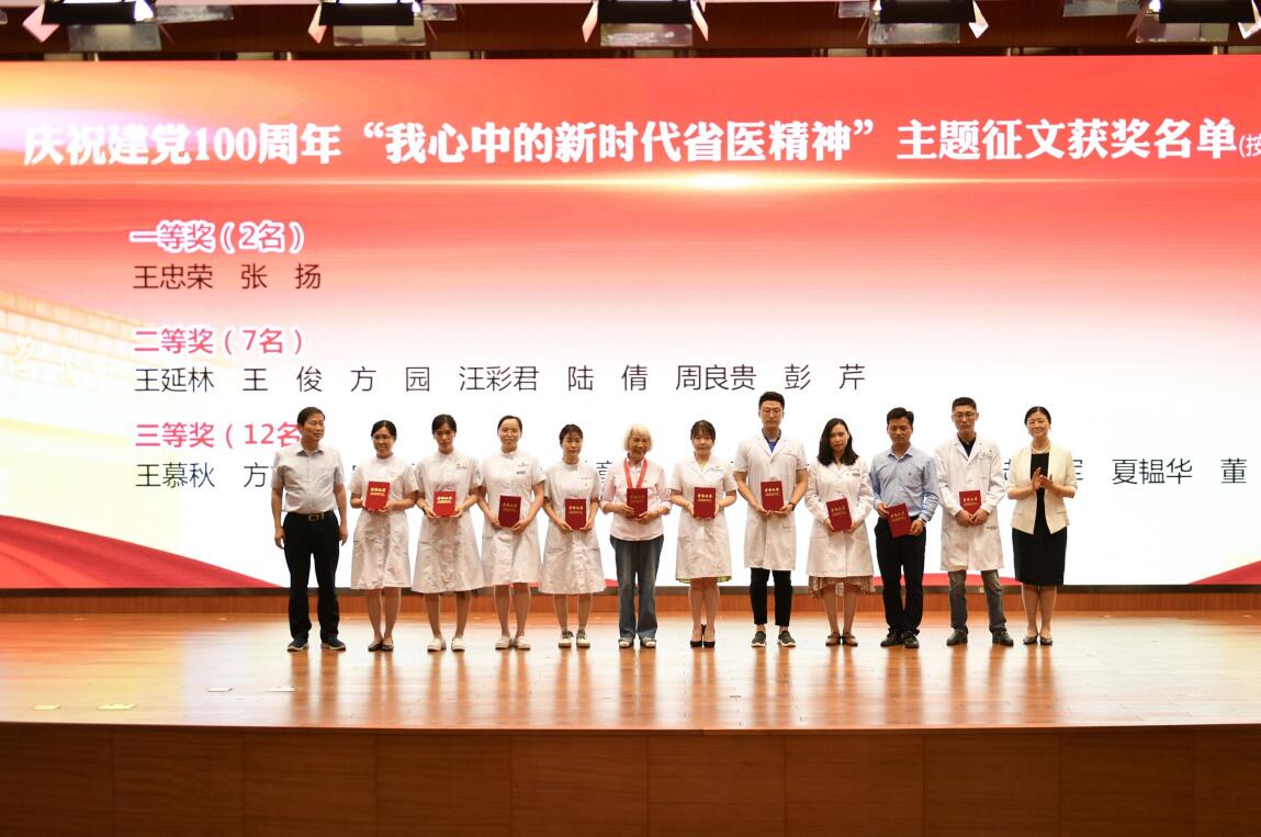 附一院党委副书记刘军宣读院“优秀共产党员”“优秀党务工作者”“先进基层党组织”的表彰决定,院领导为先进集体、优秀个人及“我心中的新时代省医精神”主题征文获奖者代表颁发获奖证书。希望受表彰的集体和个人再接再厉,继续发扬谦虚谨慎、不骄不躁的优良作风,充分展现新时代省医人的精神风貌,开拓进取、再创佳绩。