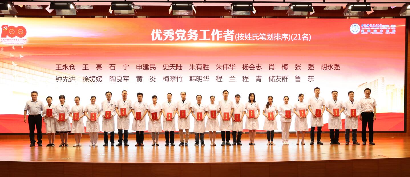 “光荣在党50年”老党员、院领导班子成员、分党委和党总支书记、职能部门负责人、科主任、护士长、党支部书记、民主党派代表、新党员及先进集体和个人代表参加大会。大会由附一院执行院长、党委副书记严光主持。