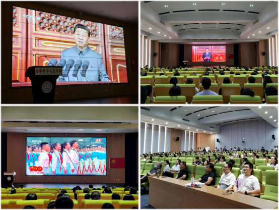 为庆祝中国共产党成立100周年,引导和激发学生爱党、爱祖国、爱社会主义的责任感和使命感,7月1日上午,中国科大组织全体党员和入党积极分子在生命科学学院一楼报告厅,生物楼429、531会议室,生物楼副楼104、109教室共5个会场,集中收看“庆祝中国共产党成立100周年大会”现场直播。