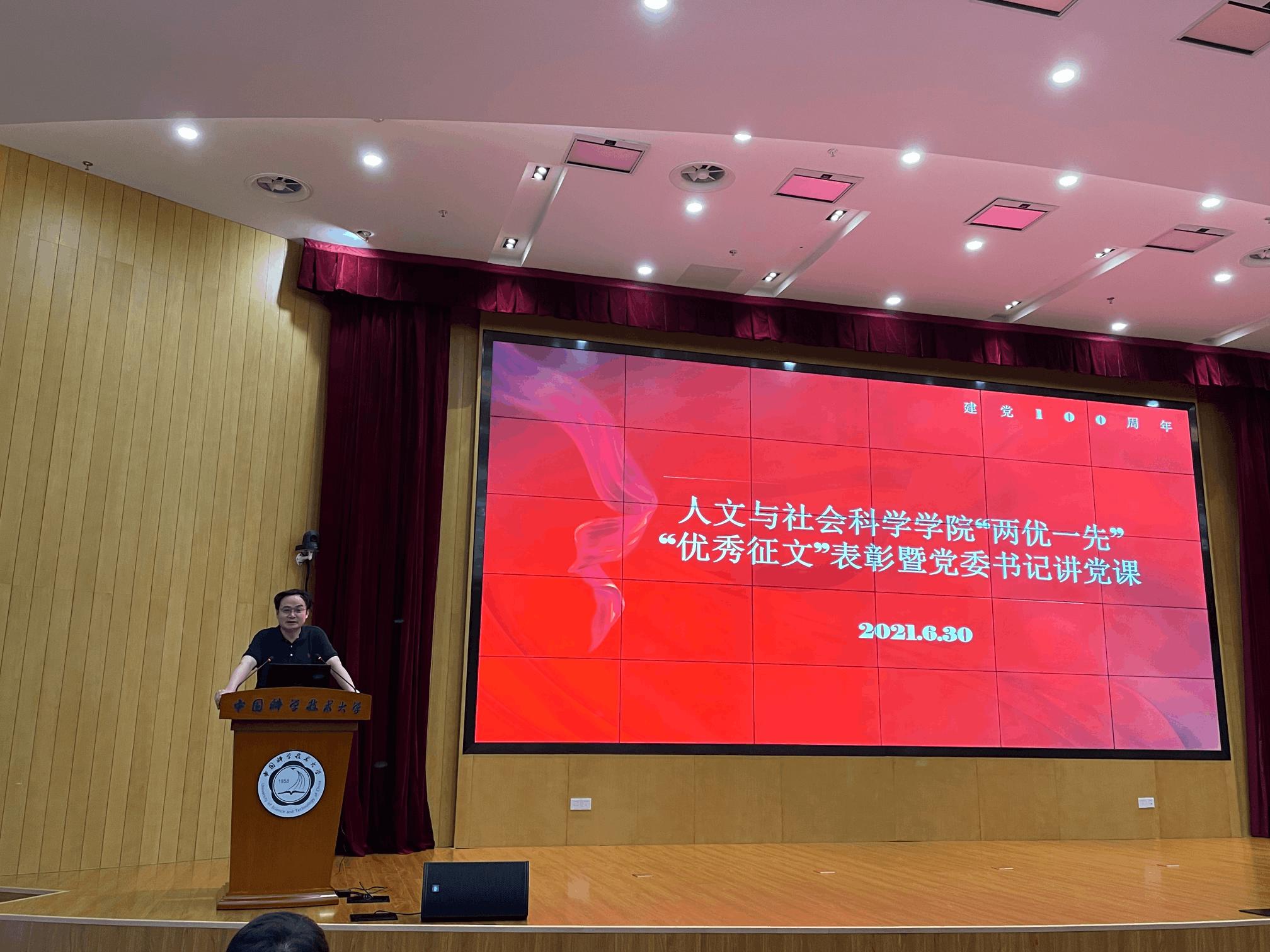 6月30日上午10点,人文与社会科学学院在东区物质楼三楼报告厅举办人文与社会科学学院“两优一先”“优秀征文”表彰大会暨党委书记讲党课活动,由学院党委书记褚建勋主讲党史学习教育专题党课《弘扬井冈山精神,推动学院创新发展》,全院全体师生党员及积极分子参加。学院党委委员、执行院长石云里主持。