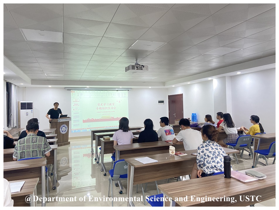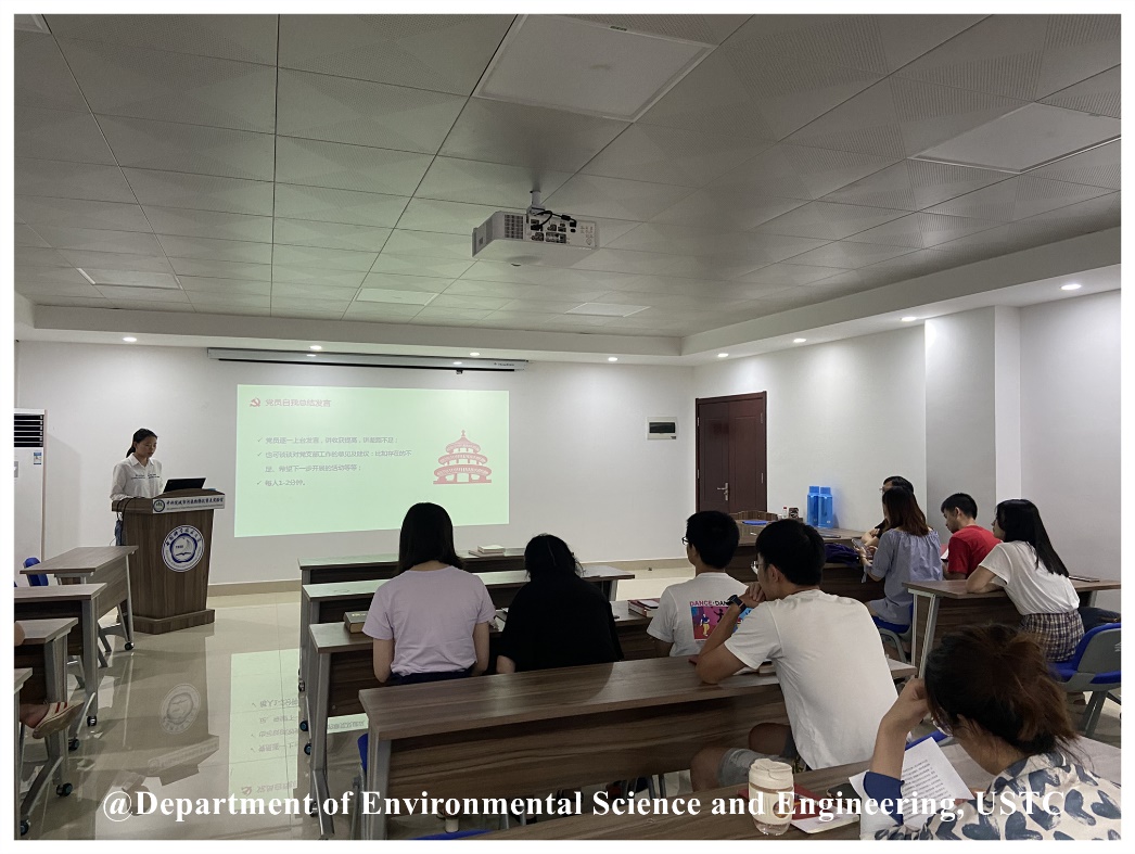 2021年7月14日晚,环境科学与工程系研究生第二党支部在中区应用化学楼302会议室召开党支部大会暨党史学习教育专题组织生活会,支部全体党员和系党总支委员盛国平老师参加此次会议,会议由支部书记吕振婷同志主持。