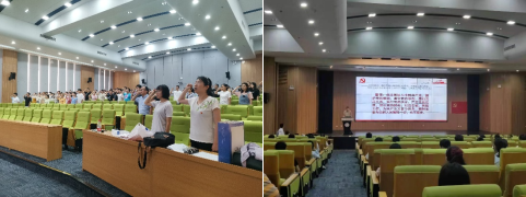 之后,由李旭领誓,预备党员进行入党宣誓,其他党员重温入党誓词。一句句铿锵有力的誓言响彻在整个报告厅内,每位同志更加坚定了作为一名共产党员的初心、使命和信仰。