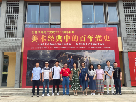 随后大家来到中区现代艺术中心参观了由人文与社会科学学院主办的特展《美术经典中的百年党史》。在中国共产党成立100周年这一伟大时刻,支部党员同志们怀着对党的崇高敬意,在红色经典美术作品汇聚成的壮阔视觉史诗中欣赏了一场高品质的艺术盛宴。画卷中所反映的百年党史的峥嵘岁月、中华民族的沧桑巨变和共产党人的壮美精神,引发了各位老师强烈情感共鸣和广泛热议好评,这是一次深刻生动的党史学习教育。