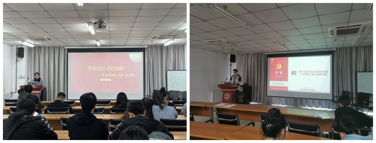 王叶同学从最近的两部影视作品《长津湖》《功勋》引入,为在座党员和积极分子同志介绍了抗美援朝战争及这场战争期间中国人民志愿军用血肉之躯保家卫国的感人事迹,在场同志们纷纷动容。去时少年身,归来甲子魂,志愿军们用自己的生命谱写出壮丽的史诗,为我们带来了和平的年代,他们当之无愧称得上是“最可爱的人”!王叶同学最后以李大钊先生的《青春》激励大家:“以青春之我,创建青春之家庭,青春之国家,青春之民族,青春之人类,青春之地球,青春之宇宙,资以乐其无涯之生。”