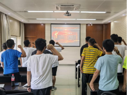 活动第一项议程是重温入团誓词。在余翔带领下,在场团员全体起立,紧握右拳,神情坚毅而又铿锵有力地念诵入团誓词。之后,团员们集体观看了电影《夺冠》,学习女排精神。