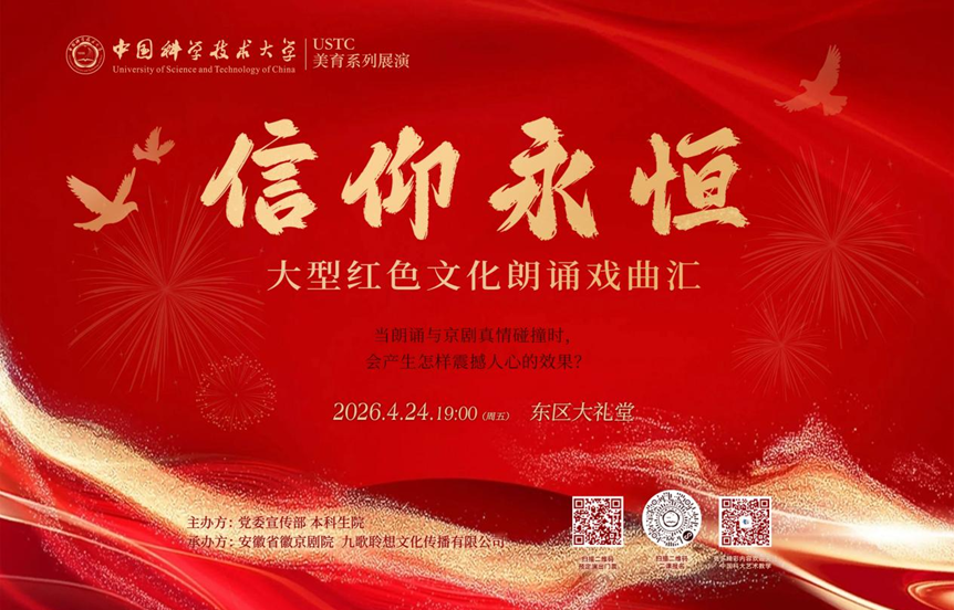 为弘扬红色文化,丰富校园文化生活,《信仰永恒》大型红色文化朗诵戏曲汇演出将在东区大礼堂举办。